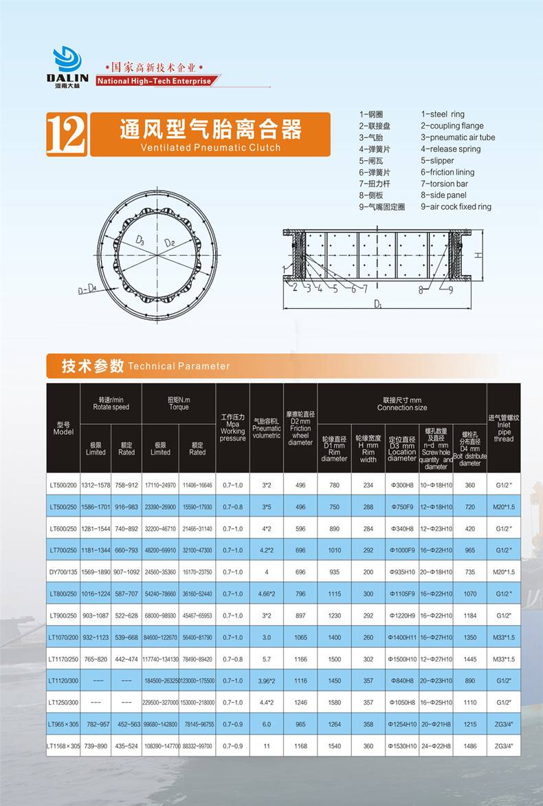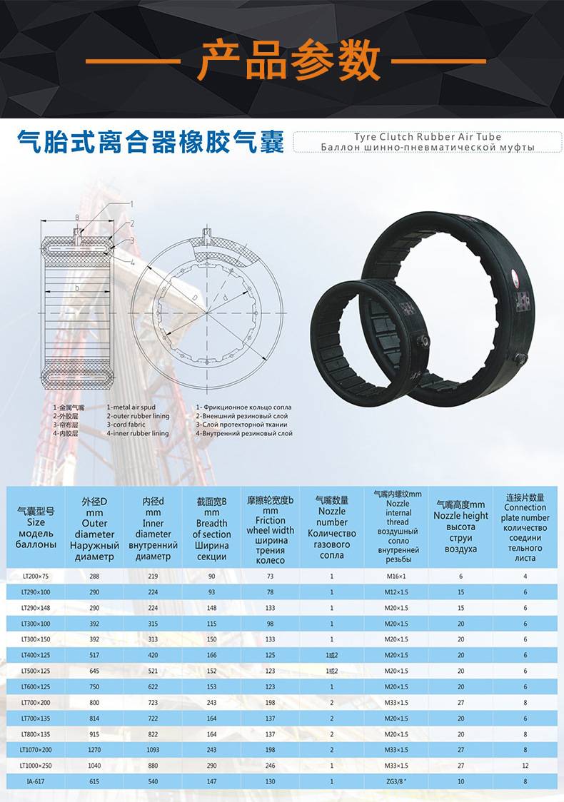 泵驱动轴用LT800/250T气胎离合器闸瓦总成 大林品牌
