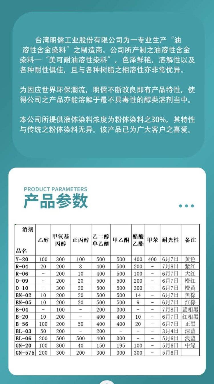 2222木器漆、烫金膜及油墨用明儒金属络合染料、色精|易分散、易渗透