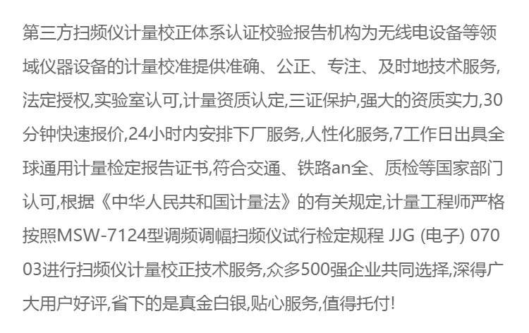 扫频仪计量校正服务优选博罗计量 一站式服务