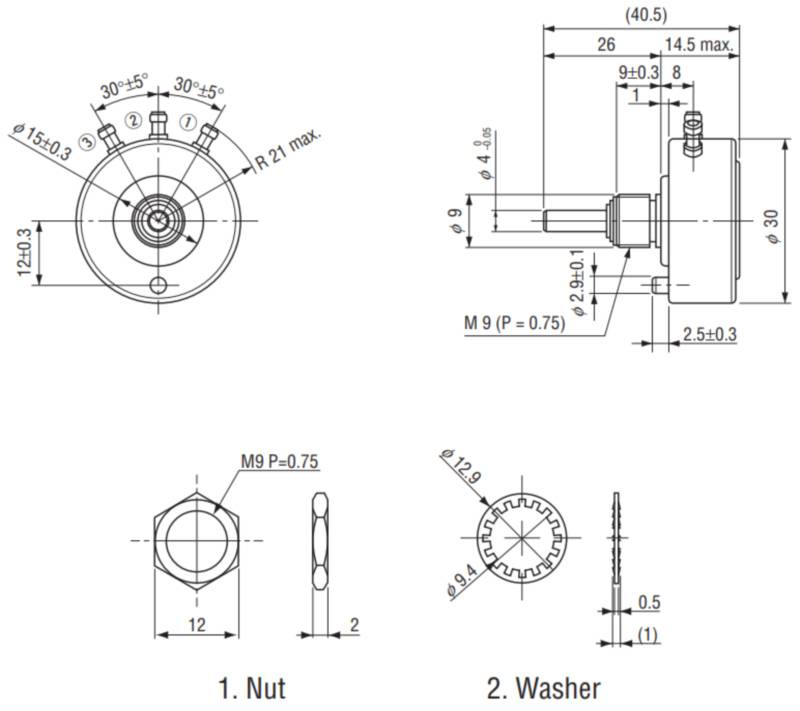 JP-30-5K电位器标准规格电阻公差±2%分辨率理论上无穷小单一直线度± 0。有效电转角300°±1°机械旋转角度360°连续额定功率(在 40°C 时)1.5W介电强度1000 Vrms 1 分钟绝缘电阻最小 1000MΩ(DC500V 时)旋转力矩2.94 {30} mN m {gf cm} 最大值滑动噪音总电阻的 2% 或 100 Ω,以较大者为准电阻温度系数±150 10-6 /°C