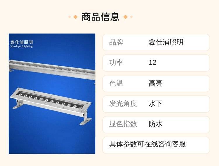 鑫仕浦照明LED水下灯(线型)12W 高亮防水户外泳池装饰灯具