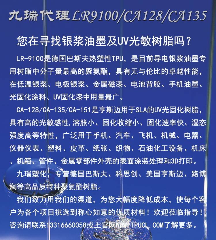 高遮盖率快干银浆UV丝印油墨光敏涂料专用TPU树脂LR9100