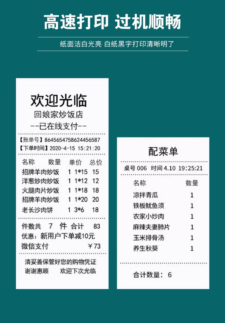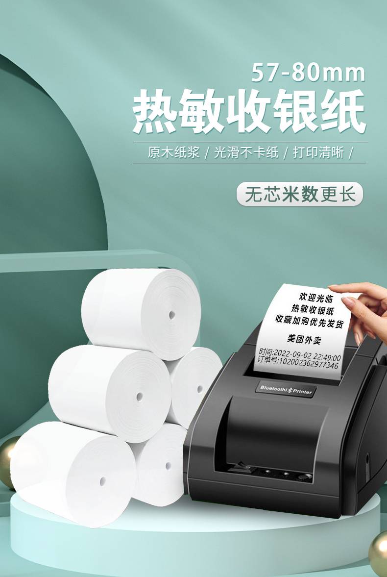 冠威热敏打印纸57x50热敏收银纸小票纸80×80超市后厨接单外卖用纸