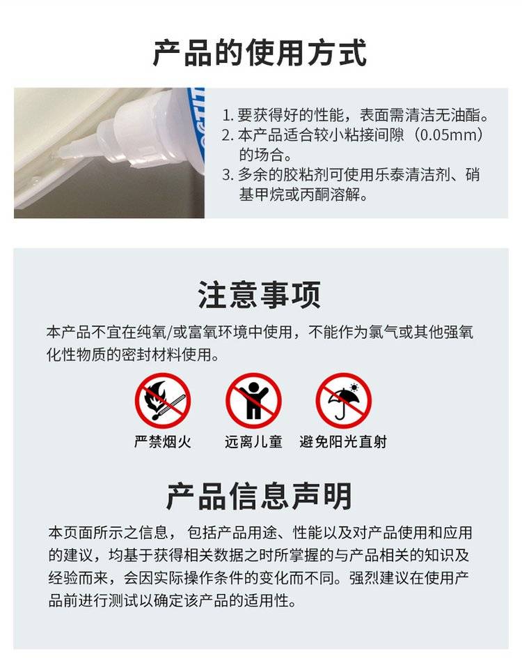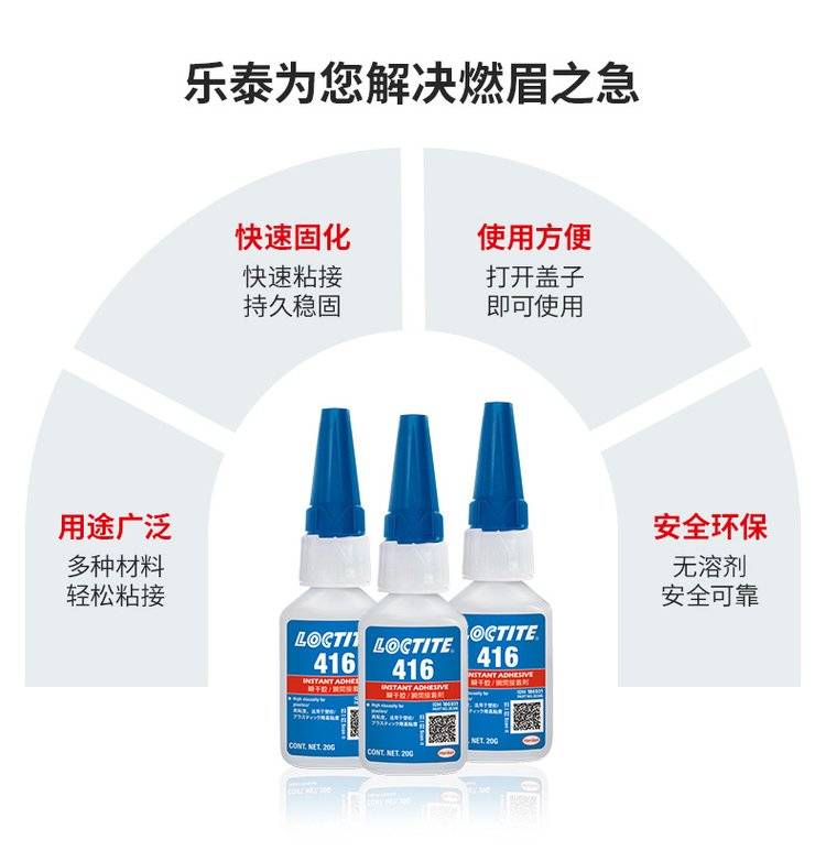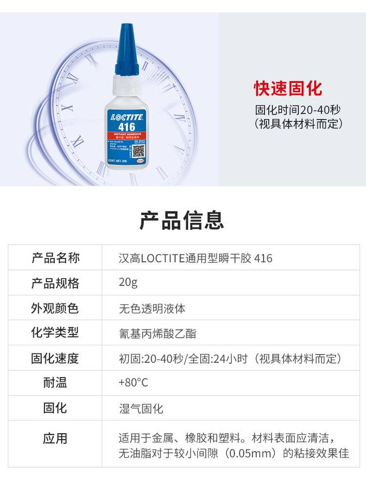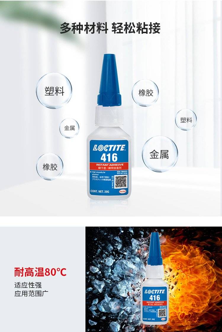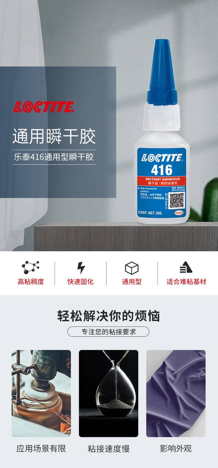 乐泰胶水416瞬干胶 塑料、橡胶和金属 无色透明液体 快速定位 20g