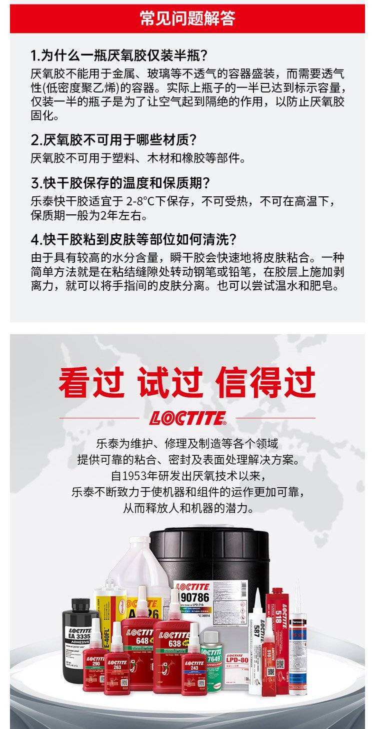 LOCTITE 乐泰401 瞬干胶水 金属塑料 低粘度 丙烯酸酯胶 50g