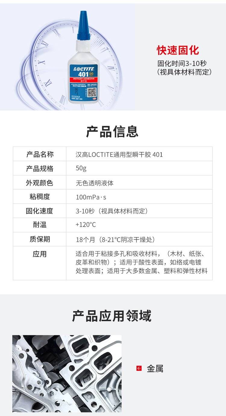 LOCTITE 乐泰401 瞬干胶水 金属塑料 低粘度 丙烯酸酯胶 50g
