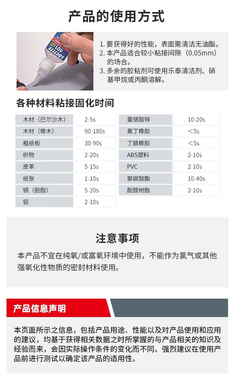 乐泰胶水416瞬干胶 塑料、橡胶和金属 无色透明液体 快速定位 20g