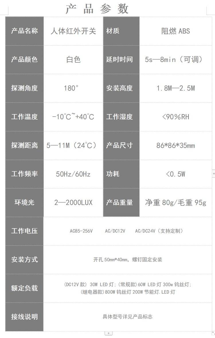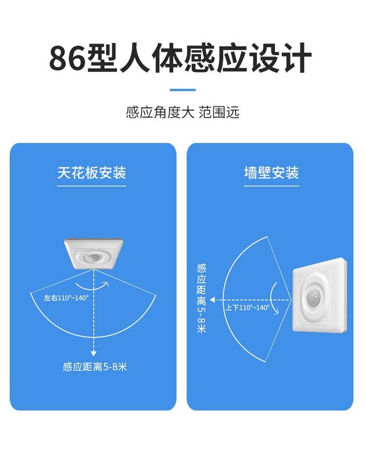 感应开关人体感应220V红外线家用大功率LED灯智能感应器86面板