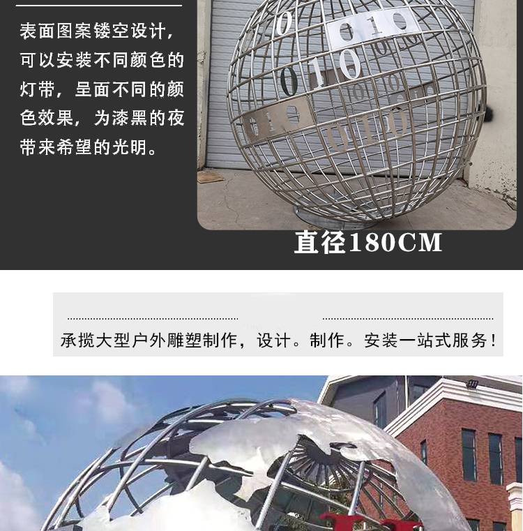 定做不锈钢地球仪发光镂空球魔方雕塑户外大型金属球创意摆件