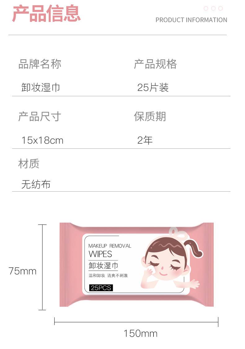 现货25片装卸妆湿巾眼妆彩妆烟熏妆一次性温和卸妆清洁湿纸巾