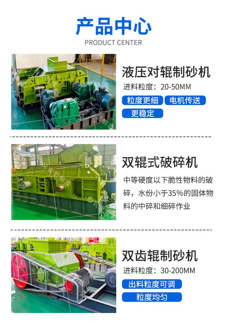 1208花岗岩数控液压辊式打砂机 时产80吨叶腊石对辊破碎机 噪音小