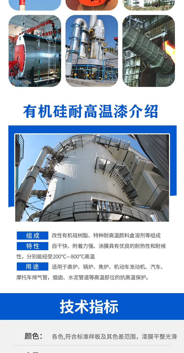 有机硅耐高温漆300度 锅炉管道烟囱高温防腐涂料 耐高温涂料