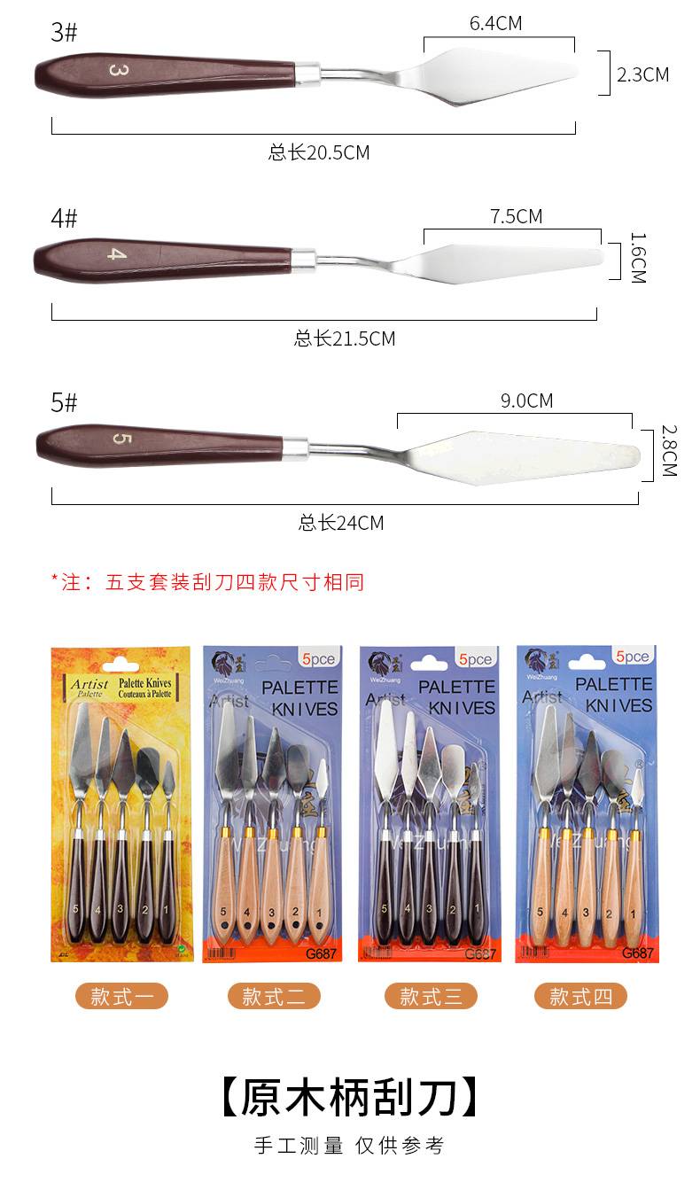 水粉颜料调色刀刮刀丙烯油画铲刀抹平挑刀尖头圆头平头美术用品