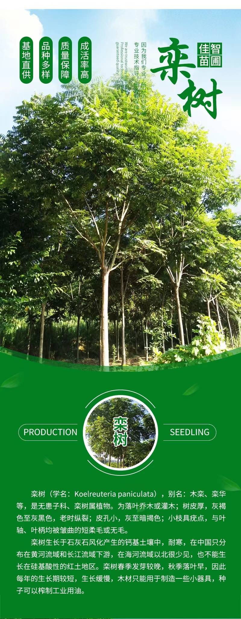 8公分全冠栾树 春季发芽较晚 秋季落叶早 带土球发货 南栾