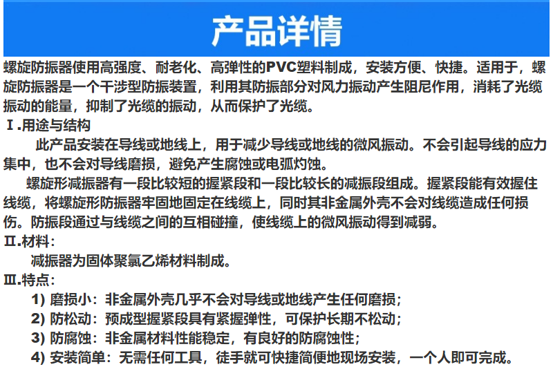 防扭器 厂家现货 PVC材质 螺旋减震器 ADSS光缆用防振鞭 K