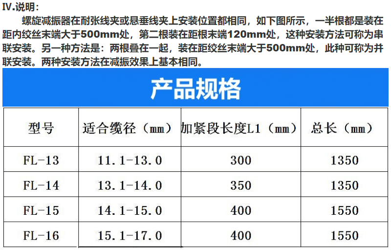 电力光缆 螺旋减震器 防扭鞭 FL型防振鞭 多种规格 固联电力 K