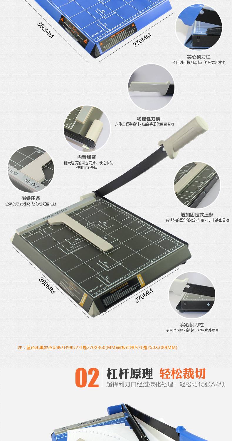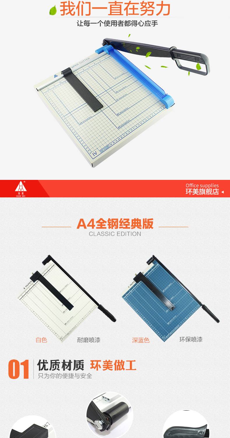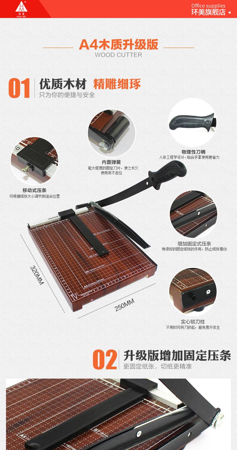 环美切纸刀a4手动裁纸刀切纸机钢制木质裁纸机小型裁相片照片裁切