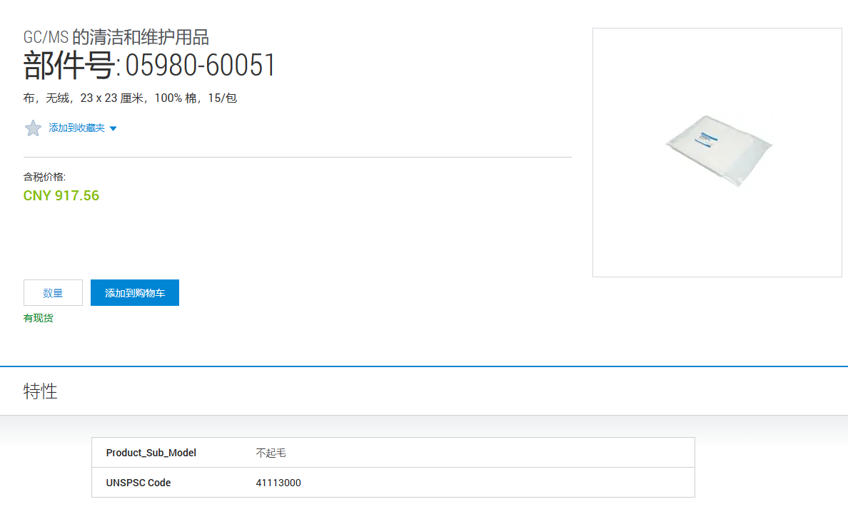 安捷伦Agilent无绒布 23 x 23厘米 棉05980-60051 清洁和维护用品
