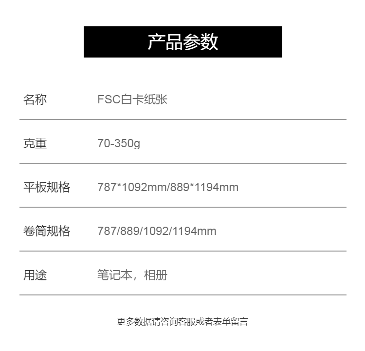 FSC白卡纸张一等品质120T日产量 888kg重量 印刷用纸
