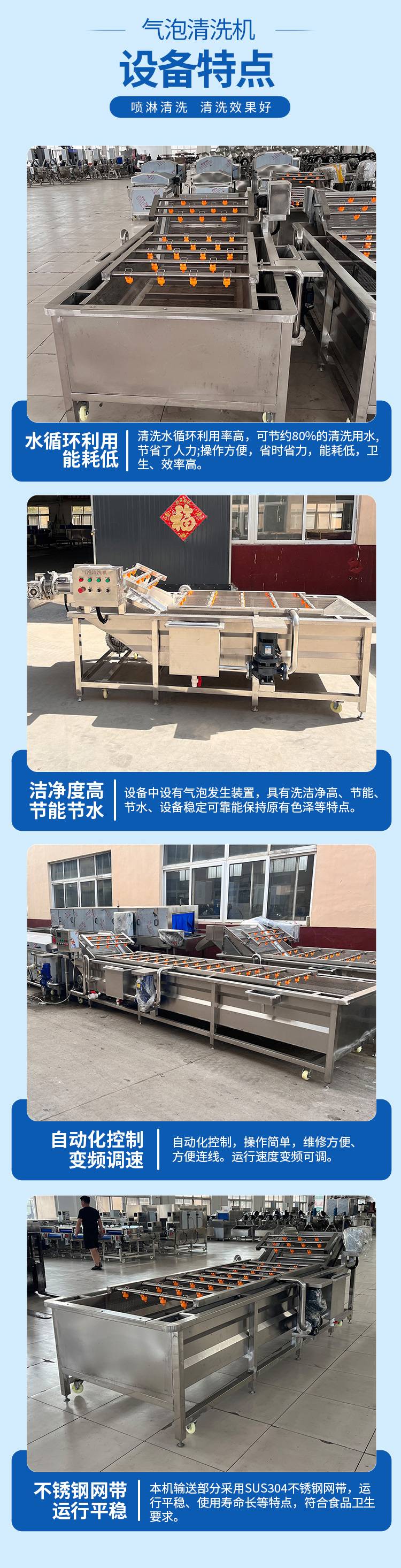 果蔬加工清洗设备 叶菜类气泡清洗机 中央厨房预制菜加工流水线