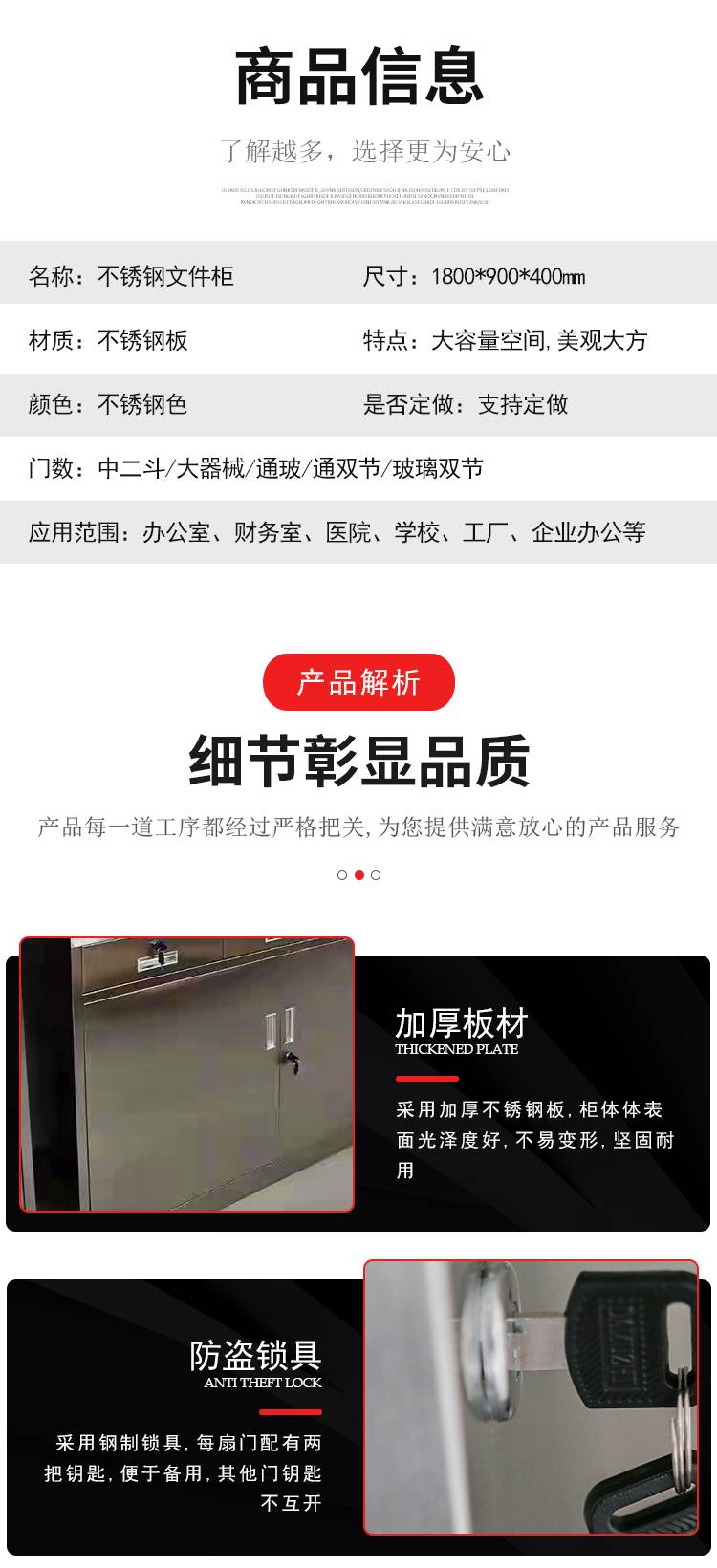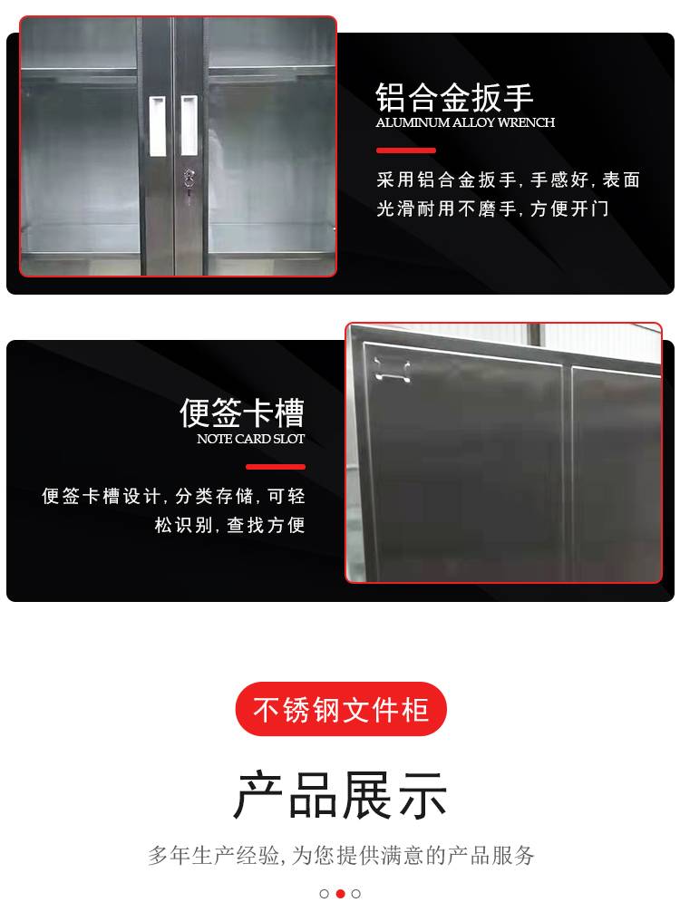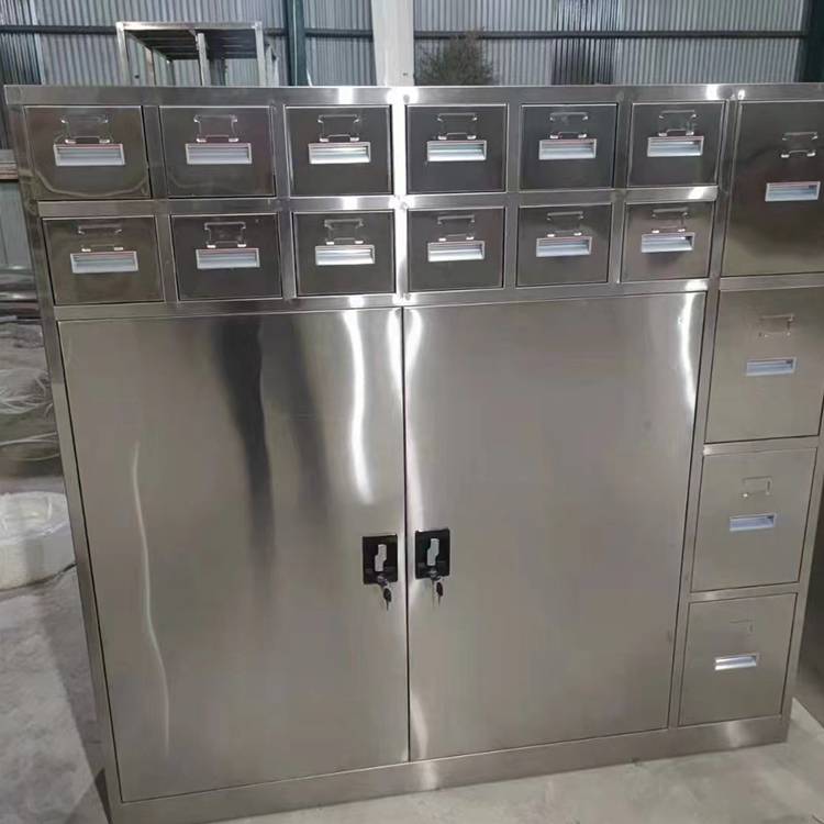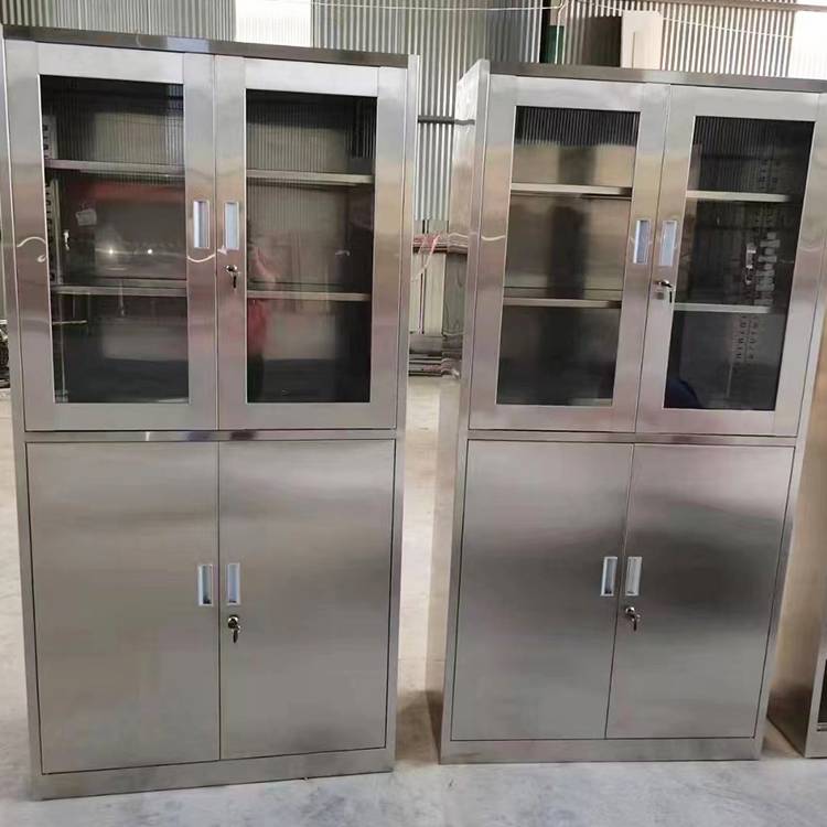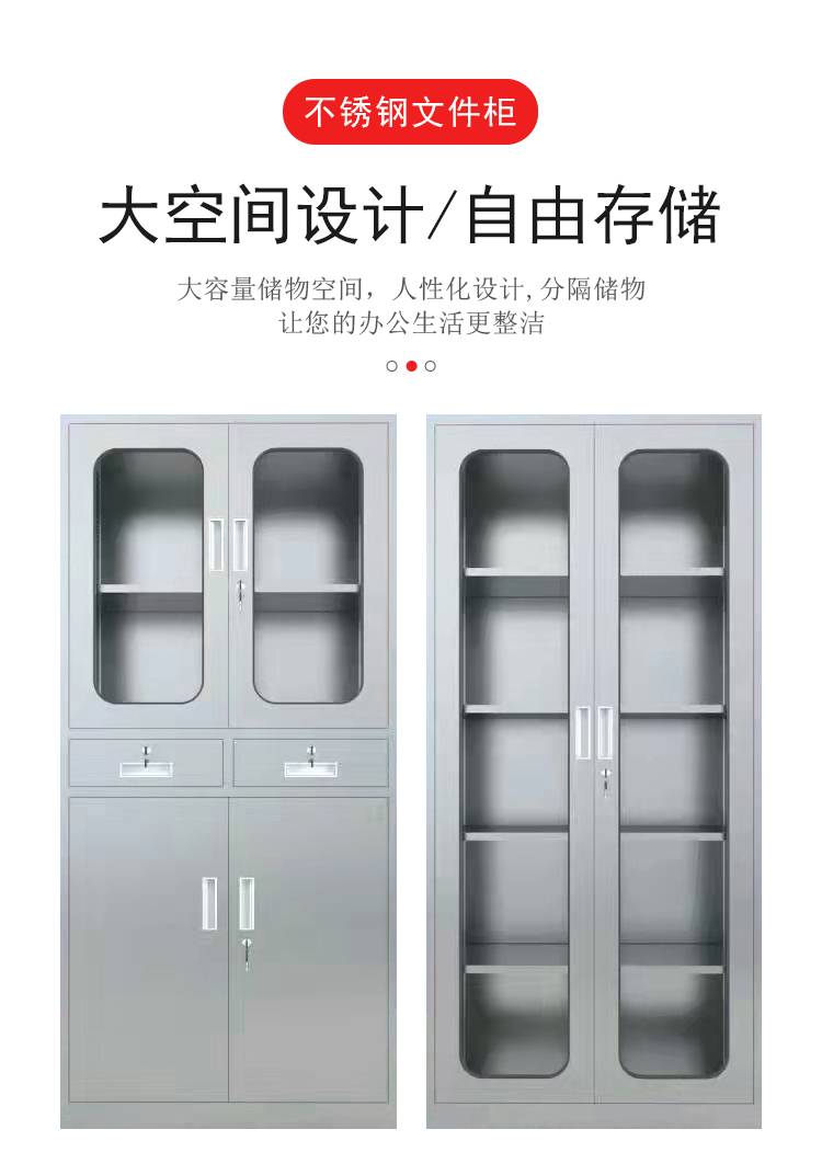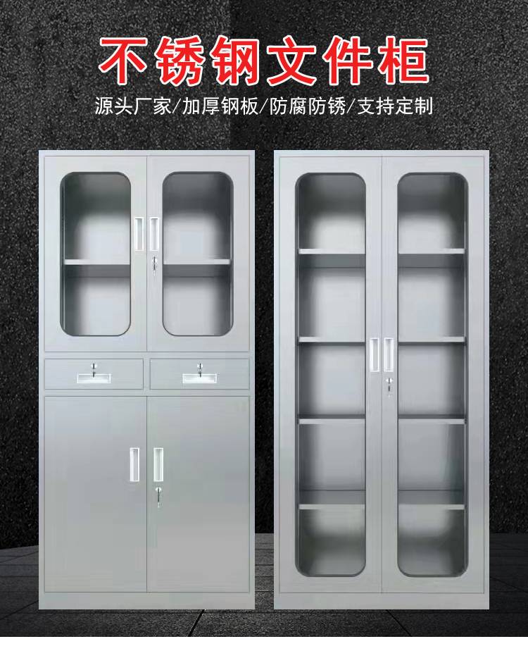 不锈钢分体双节文件柜 上下两节四门内置隔板可调 桌面资料柜 可定制