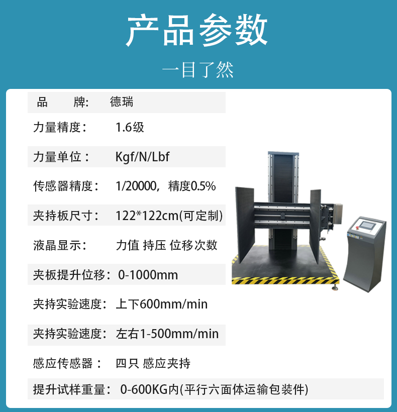 德瑞大型纸箱箱包模似夹抱力试验机电脑伺服夹箱夹持力测试仪