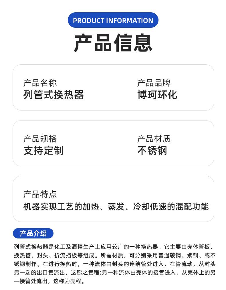 列管式换热器厂家 博珂环化 改性冷凝器专业设备 厂家批发