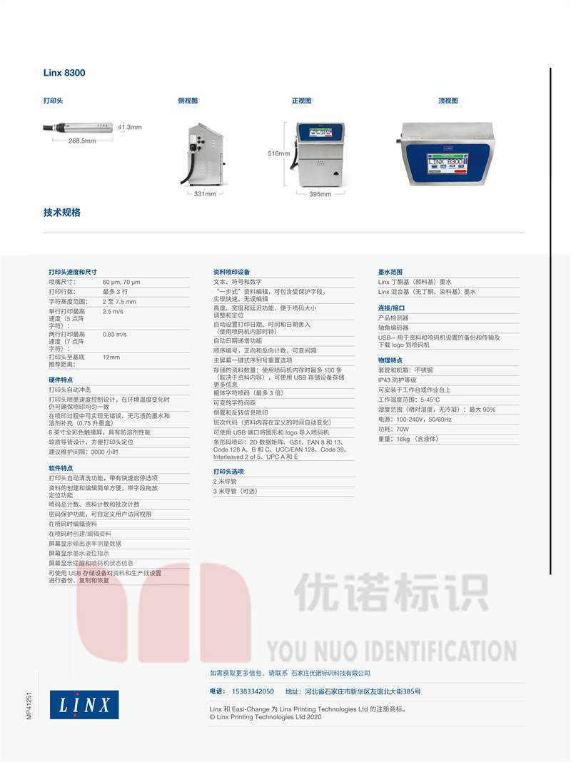 小字符喷码机LINX 8300 生产日期喷码 印码清晰易读