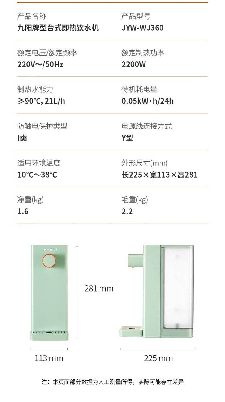 九阳台式即热饮水机JYW-WJ360 桌面净饮机 办公室家用饮水器 6档温控