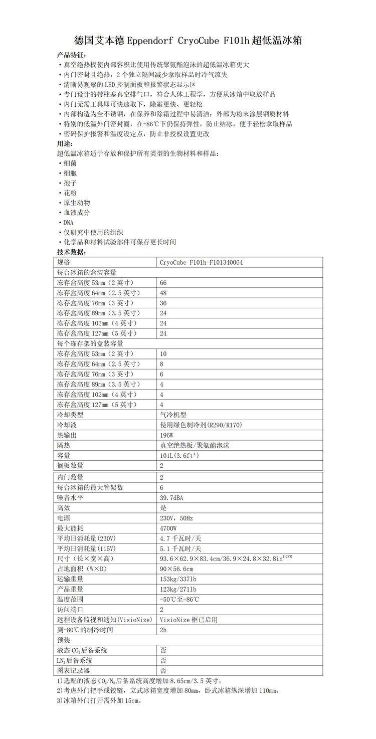 德国艾本德Eppendorf CryoCube F101h超低温冰箱