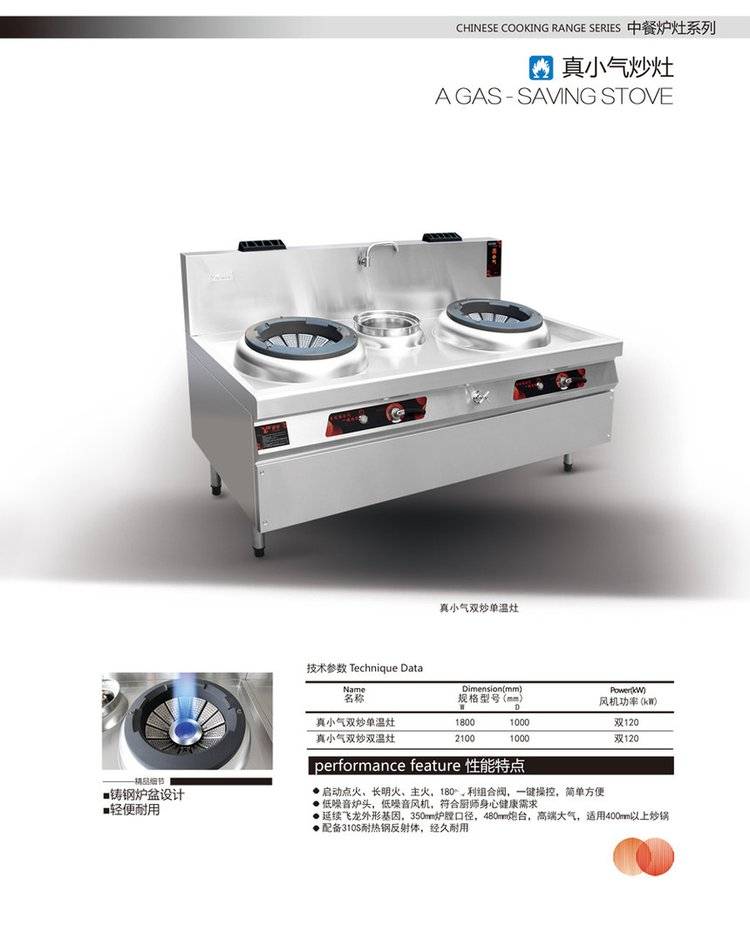 宇丰御丰真小气炒灶 不锈钢 商用节能两炒一温灶燃气灶熄火保护