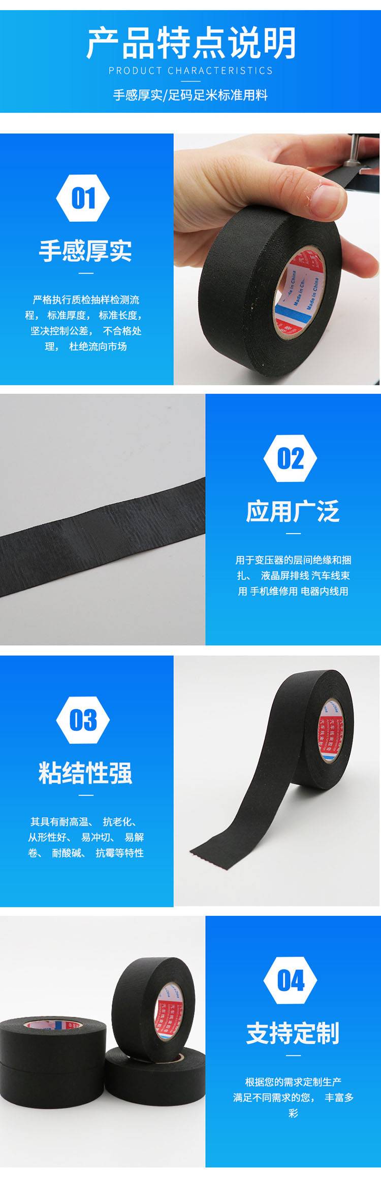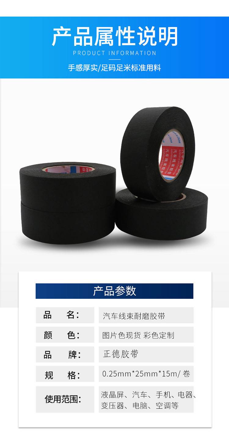 耐高温涤纶纤维布高粘汽车线束胶带 耐磨布基胶带阻燃款线束胶卷