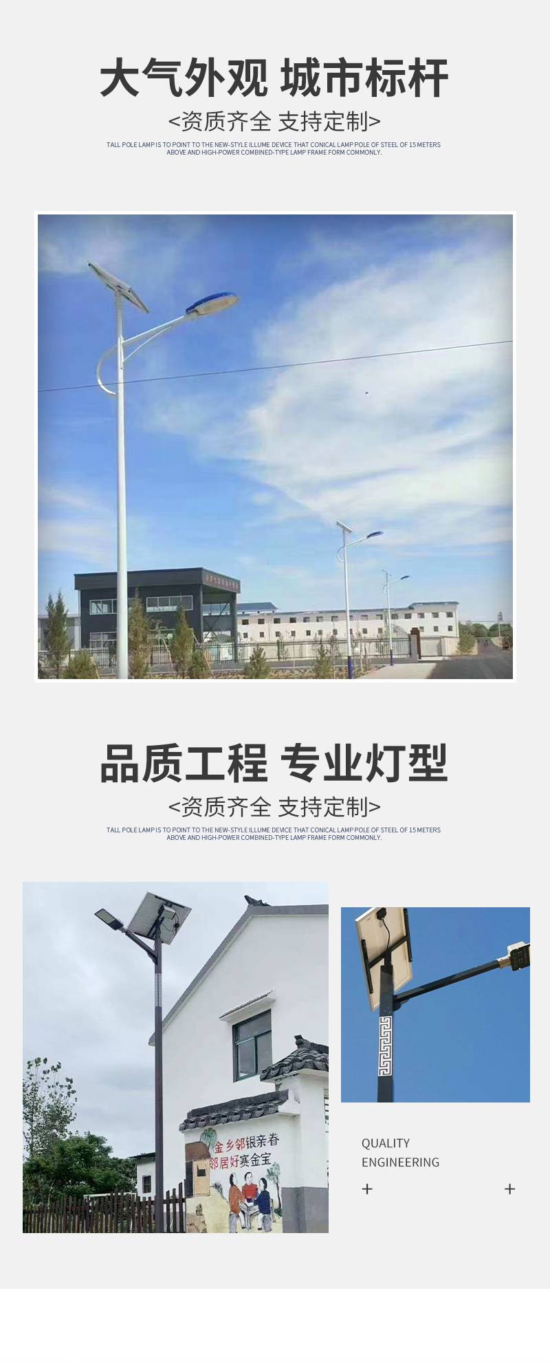 科铭 6米太阳能路灯 农村胡同墙壁LED灯具 电线杆照明