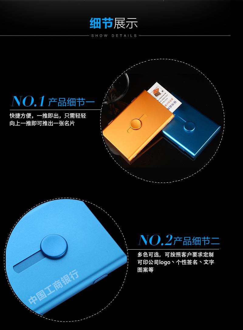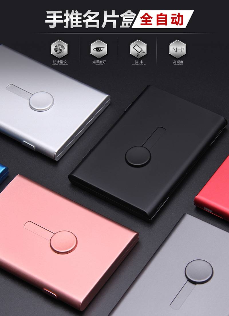 自动名片盒 高档金属手推式卡片盒大容量名片夹 可定企业LOGO