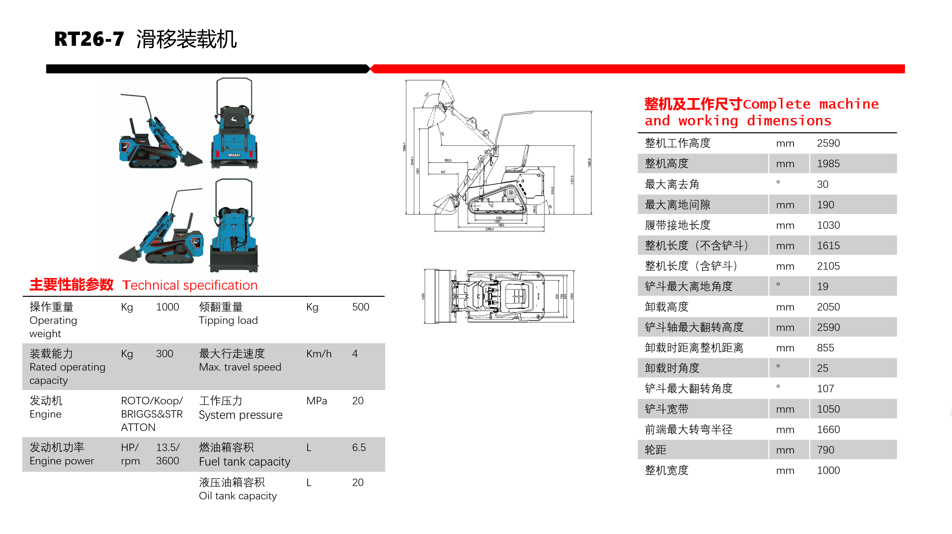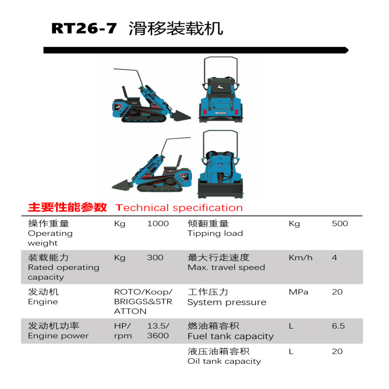 亿维履带式市政施工滑移装载机工地用小型RT26-7装卸多功能推土机