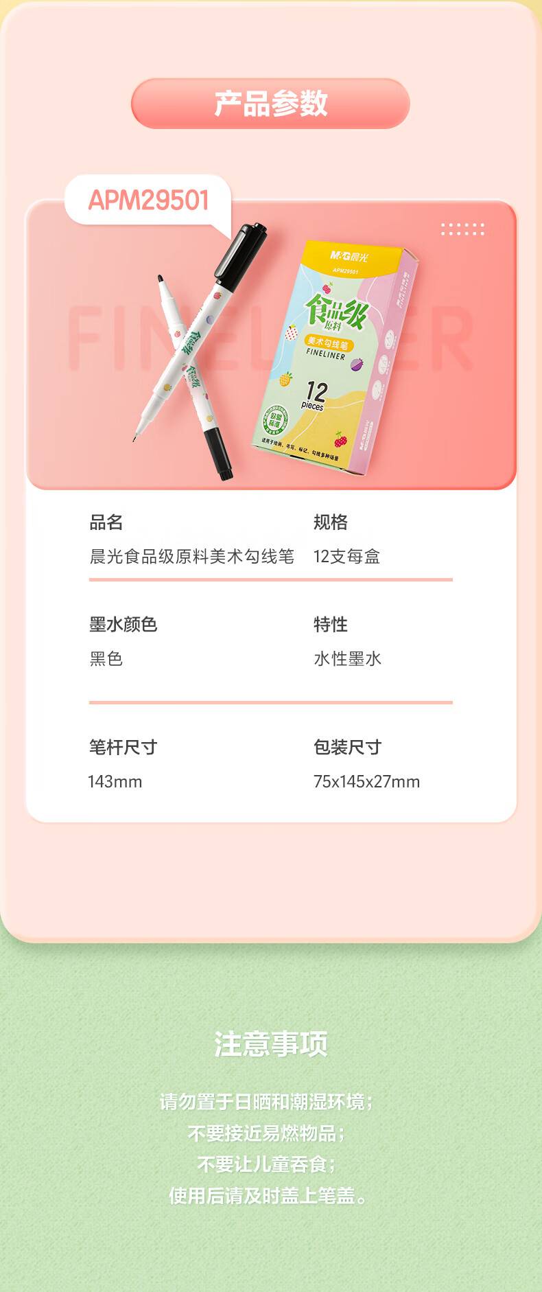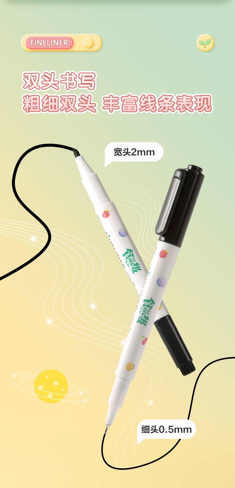 晨光29501 食品级原料美术勾线笔 水性绘画小双头记号笔 黑色/1支