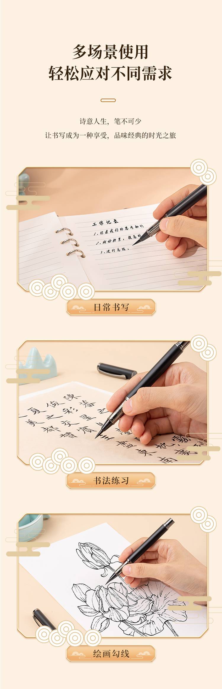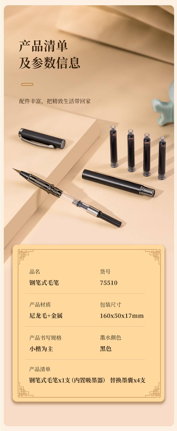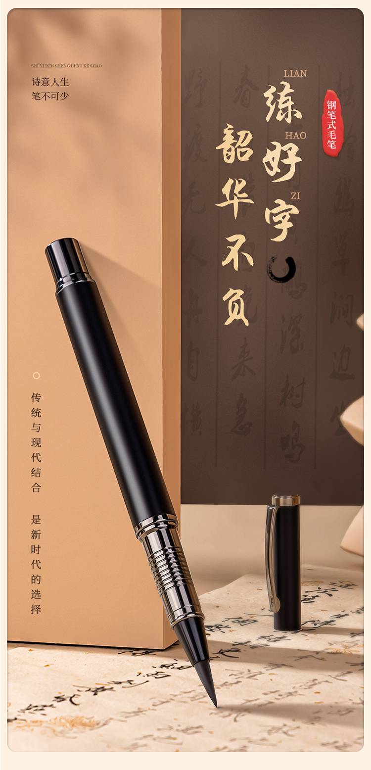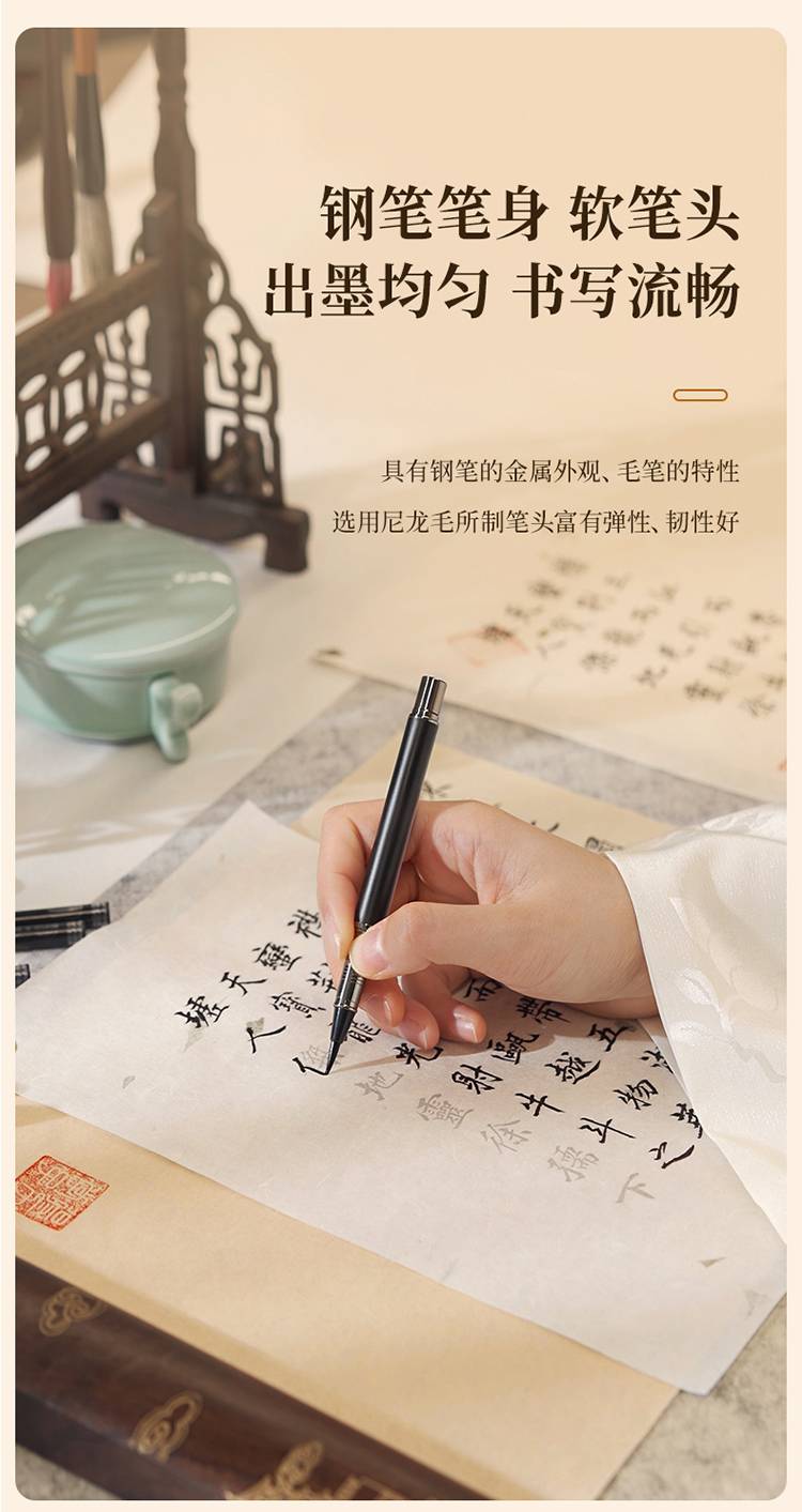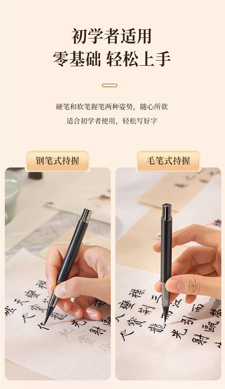 得力(deli)75510 钢笔式毛笔小楷 可加墨 可换芯 书法字帖练字套装