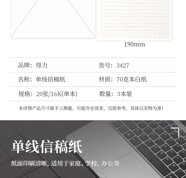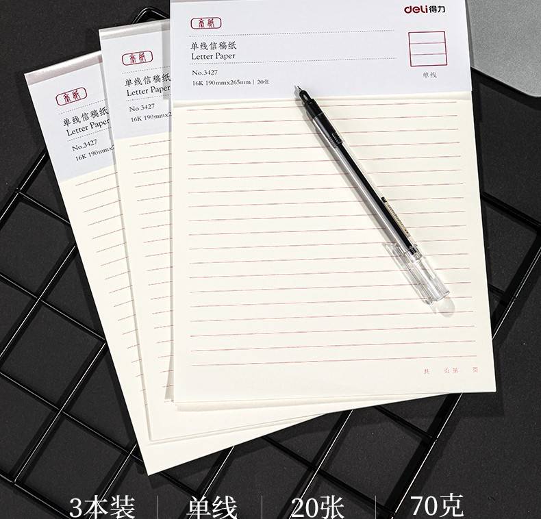 得力(deli)3429 文稿纸 方格纸 400格 作文草稿纸 20张/本稿纸