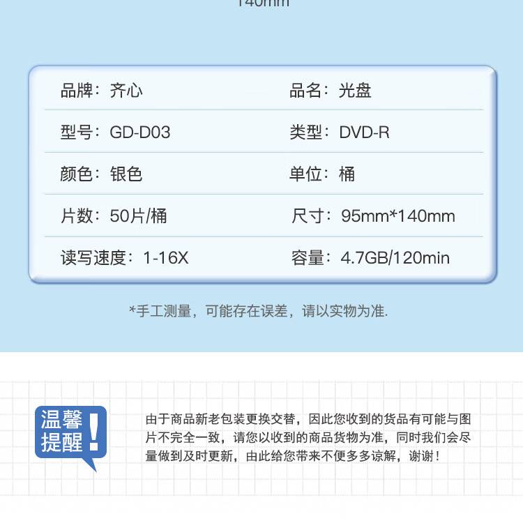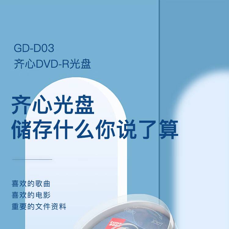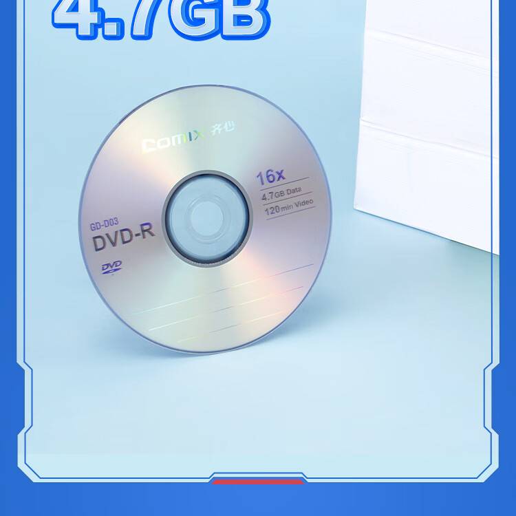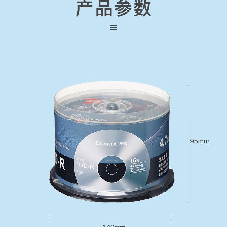 齐心(Comix)DVD+R 光盘/刻录盘 16速4.7GB 空白刻录 50片桶装