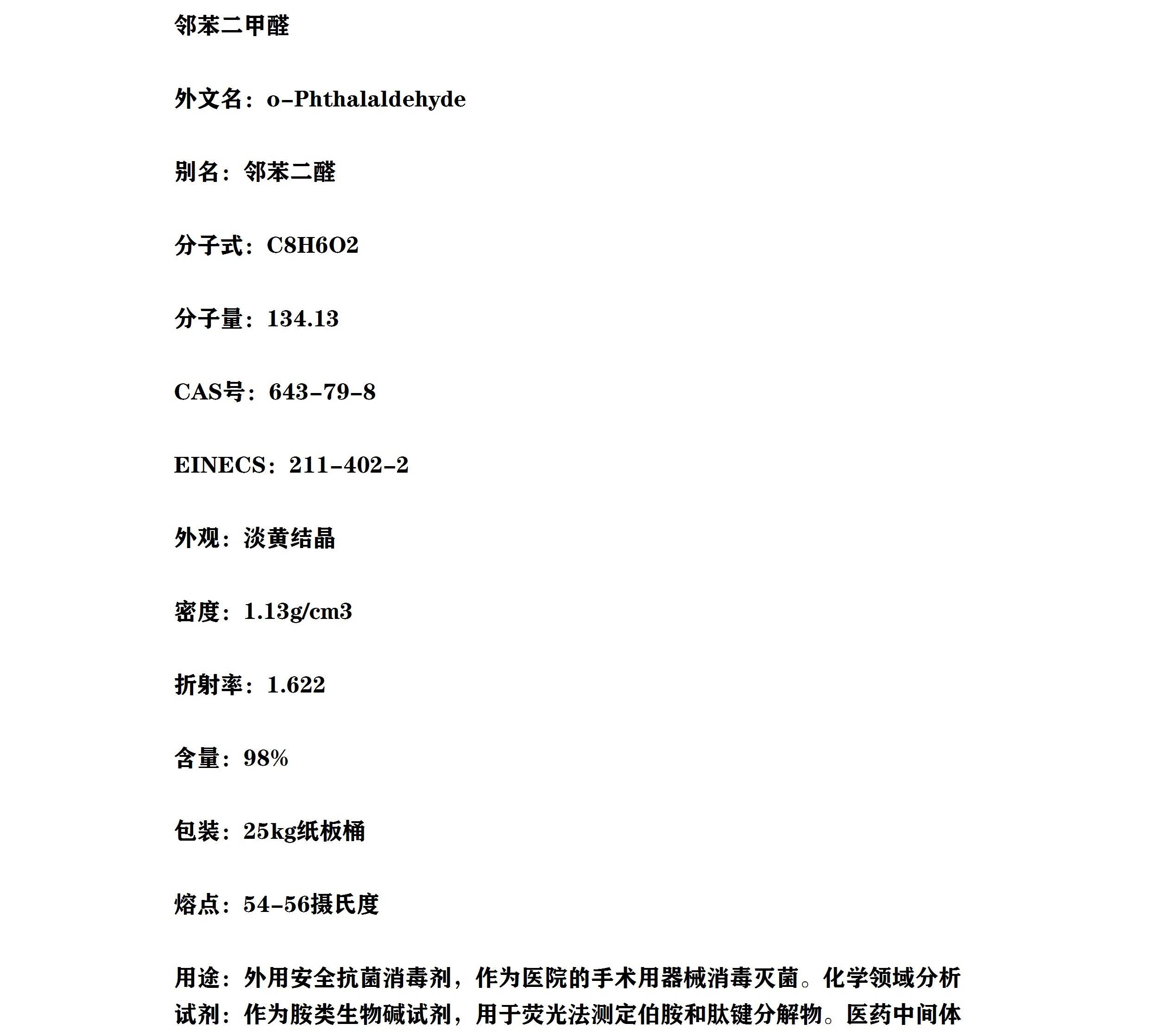 邻苯二甲醛 胺类生物碱试剂 外用安全抗菌消毒剂