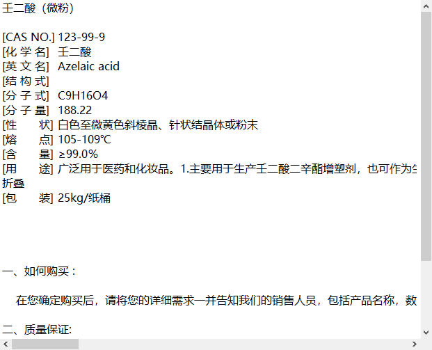 壬二酸 用于聚酰胺树脂的增塑剂原料 CAS :123-99-9