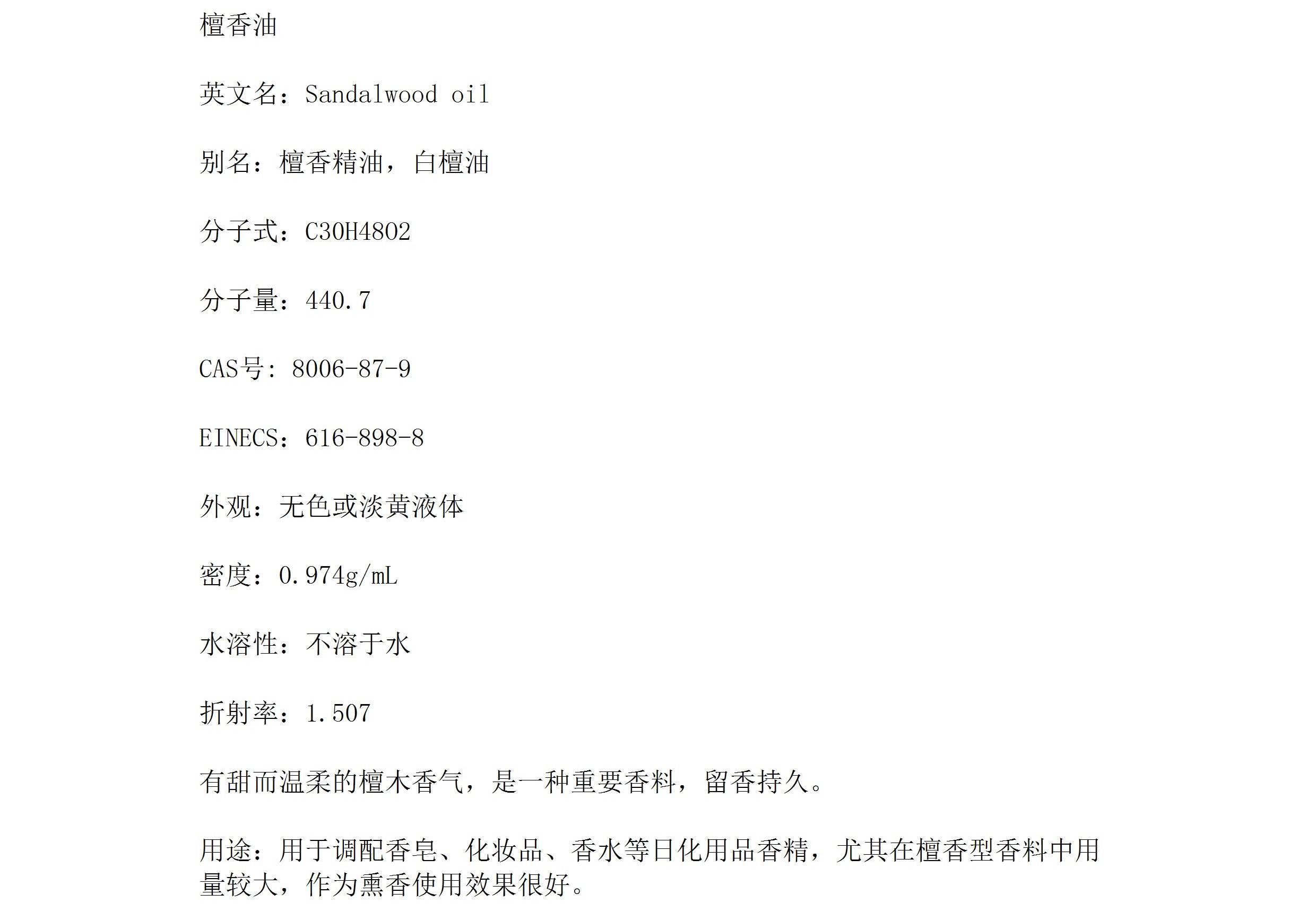 檀香油 白檀油 有甜而温柔香气 用于化妆品香水等