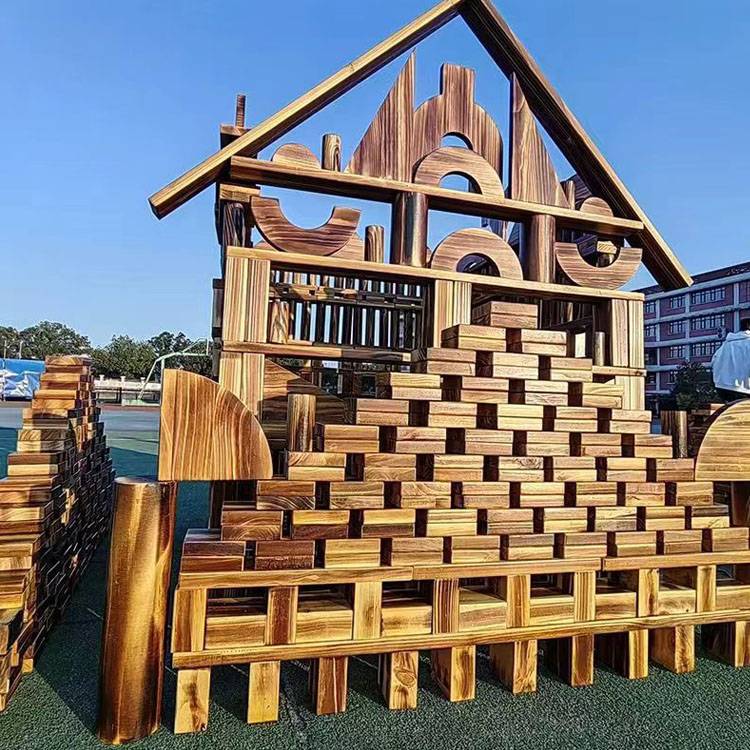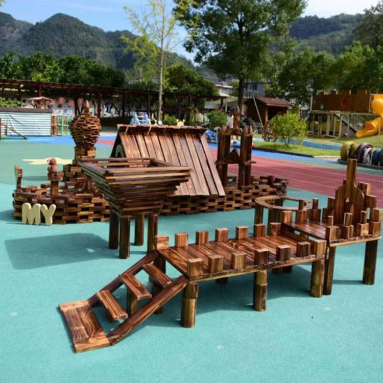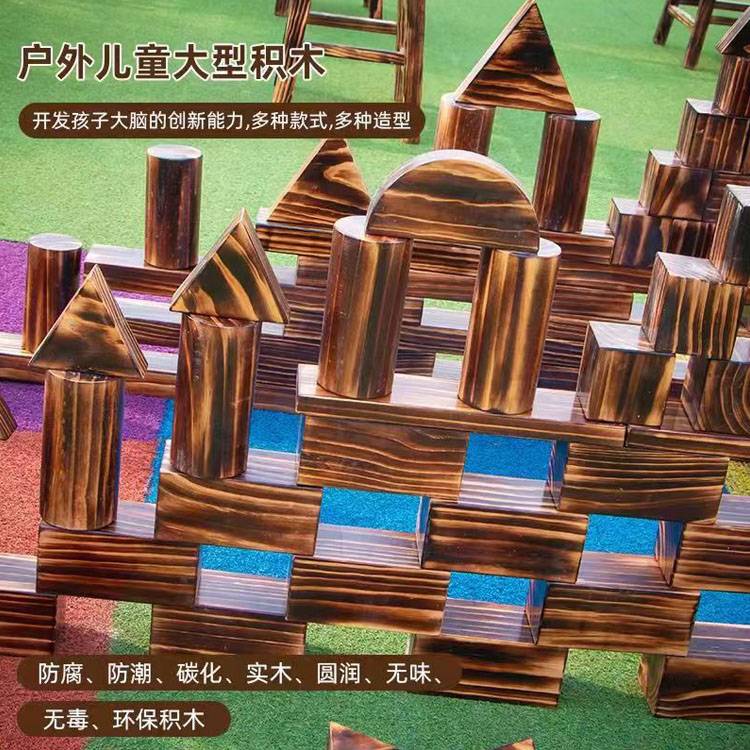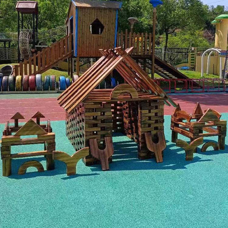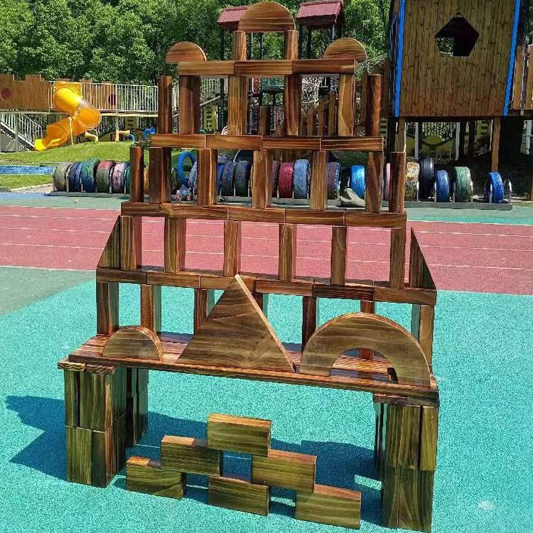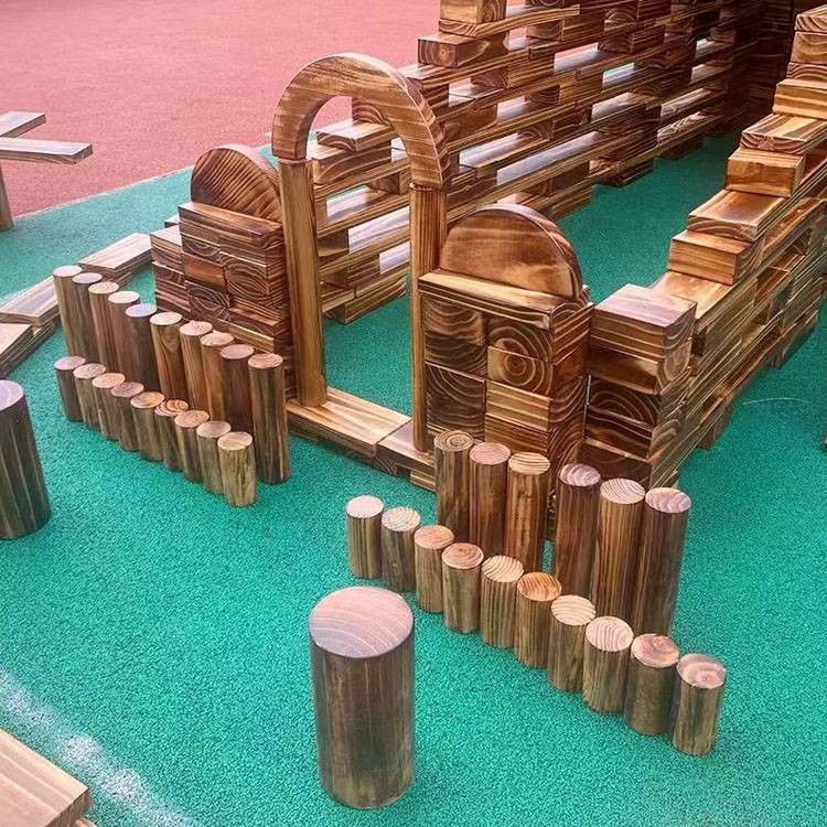 幼儿园户外大型碳化积木 木制玩具 构建区炭烧 鑫圣美