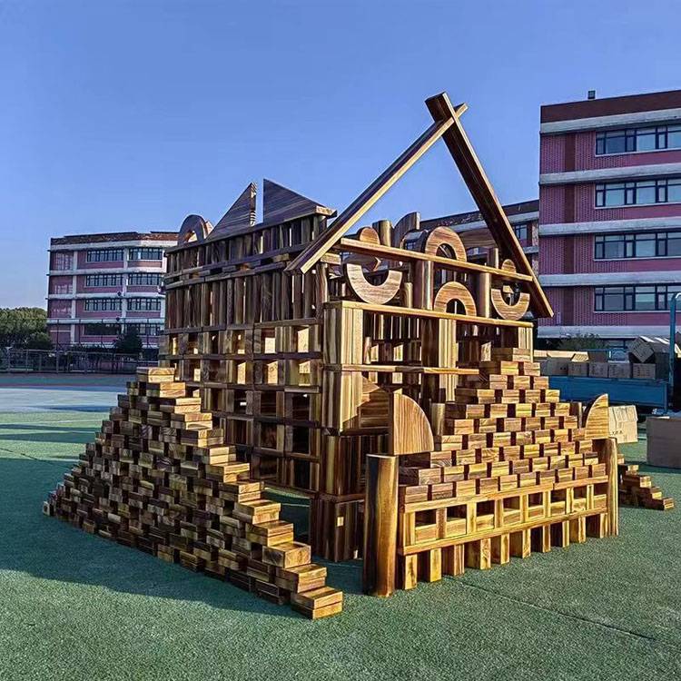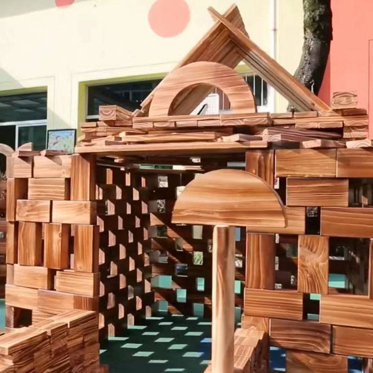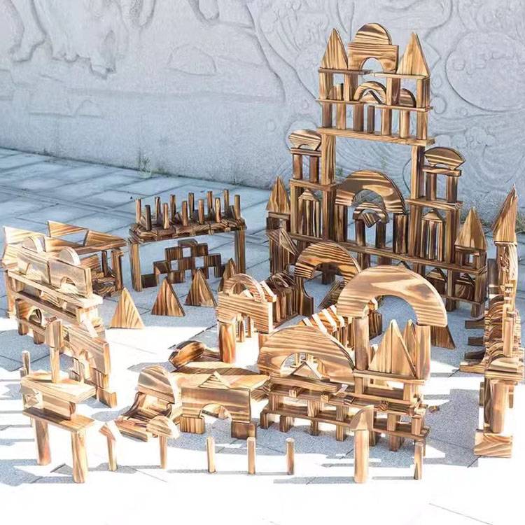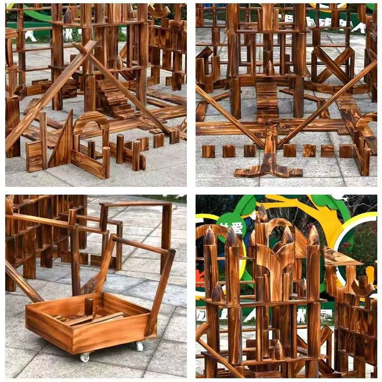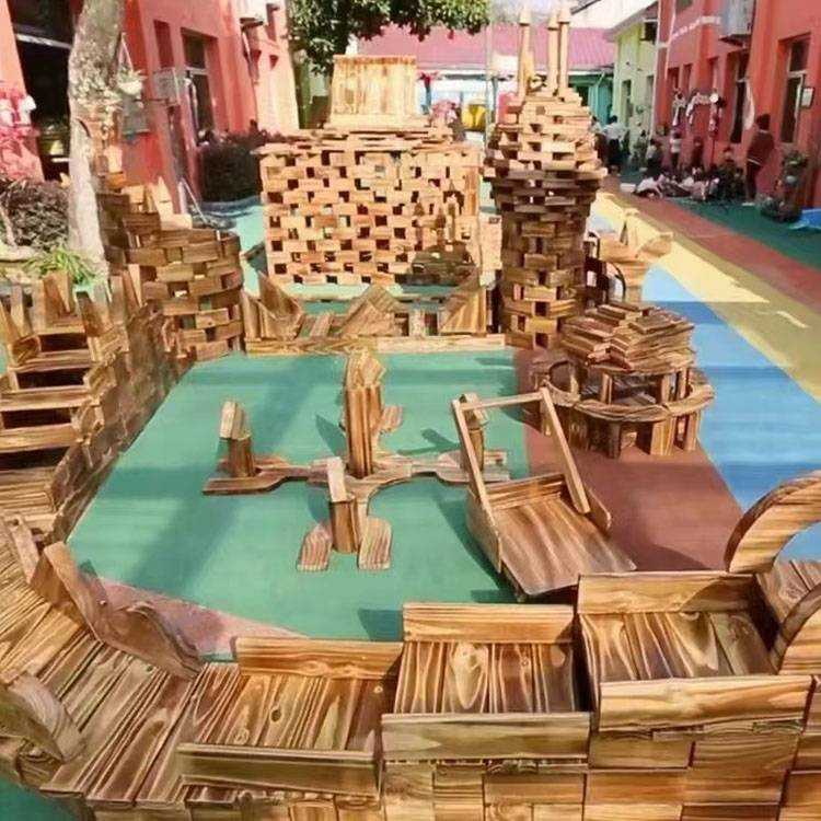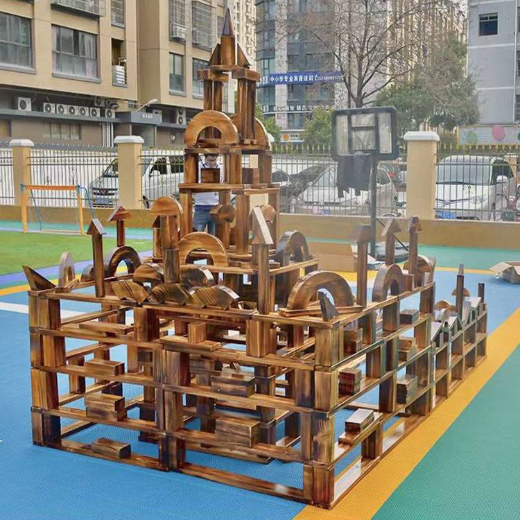 幼儿园户外大型碳化积木 木制玩具 构建区炭烧 鑫圣美