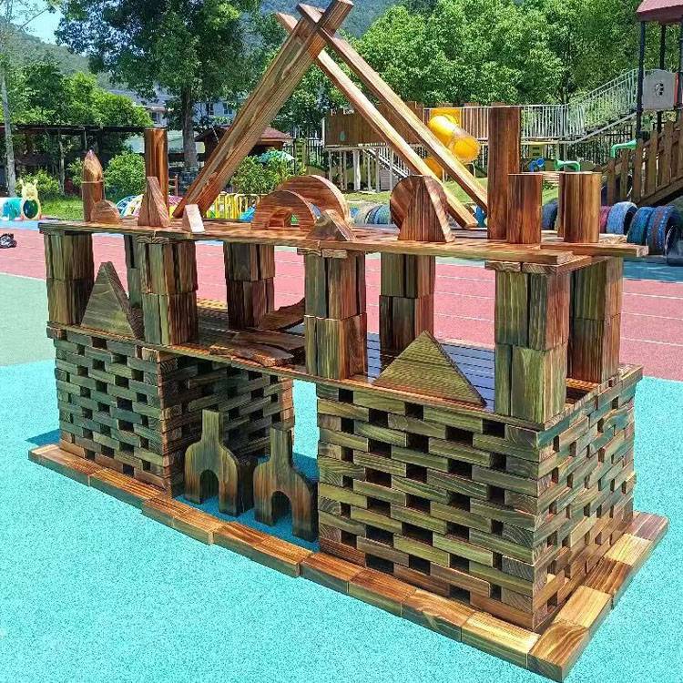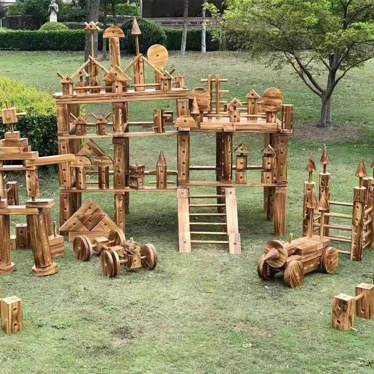 大型室外原木碳化炭烧原色积木幼儿园木质儿童构搭建木制拼搭玩具