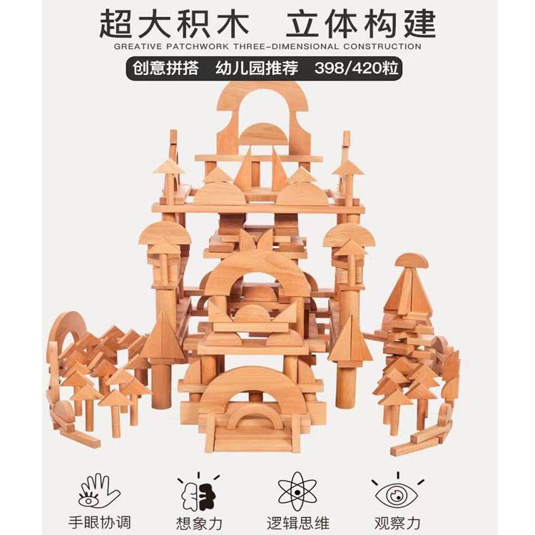 幼儿园教具早教构建区搭建实木大块碳化积木儿童拼插积木益智玩具