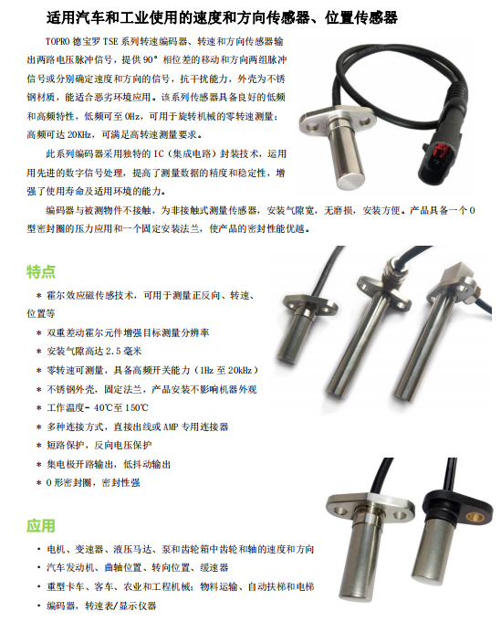 转速编码器、 适用汽车工业使用的速度和方向传感器