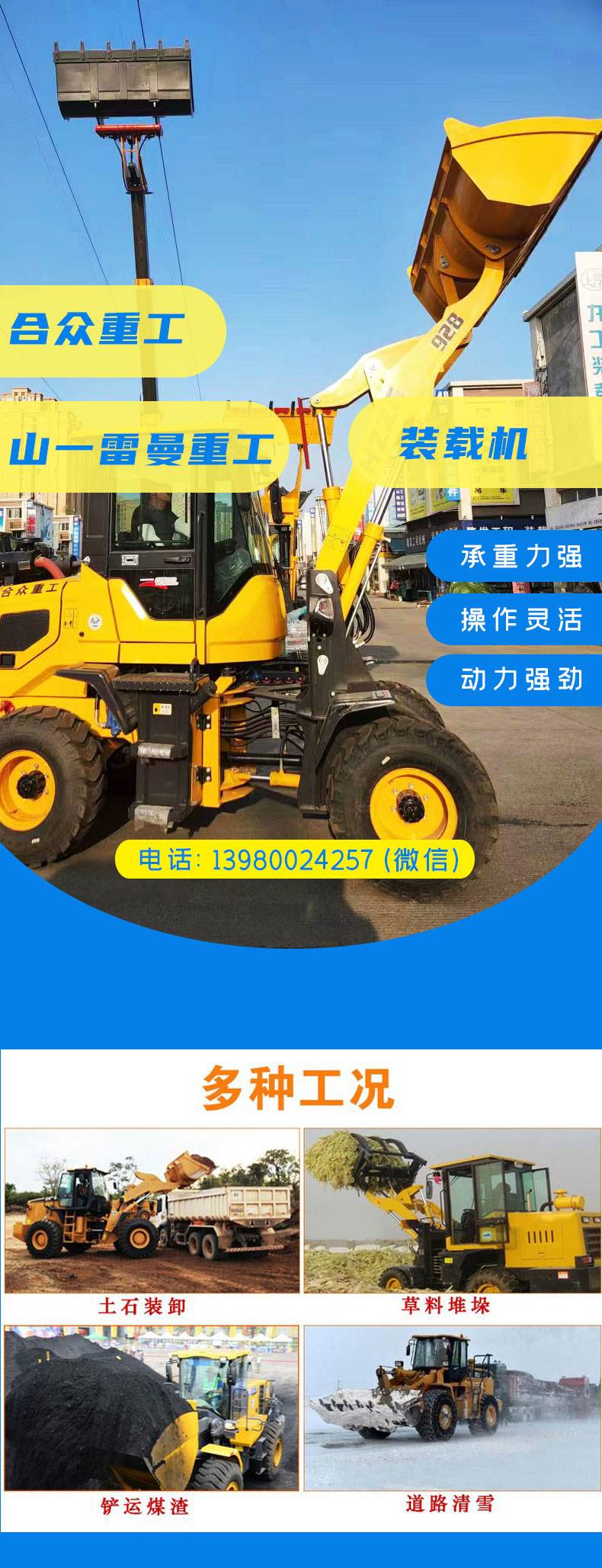 合众950重工装载机 四驱液压铲车 中小型轮式多功能铲运推土机厂家