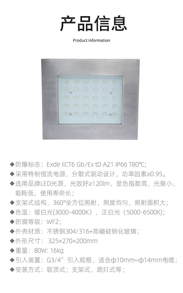 夏浦尔XPET LED防爆泛光灯 不锈钢工矿灯具 工厂车间投光灯三防灯