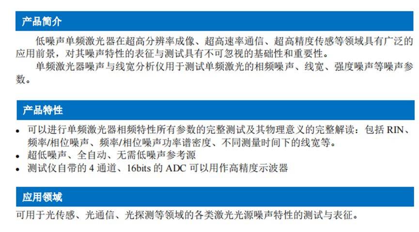 激光器线宽测试仪 用于超高分辨率成像、超高速率通信、超高精度传感